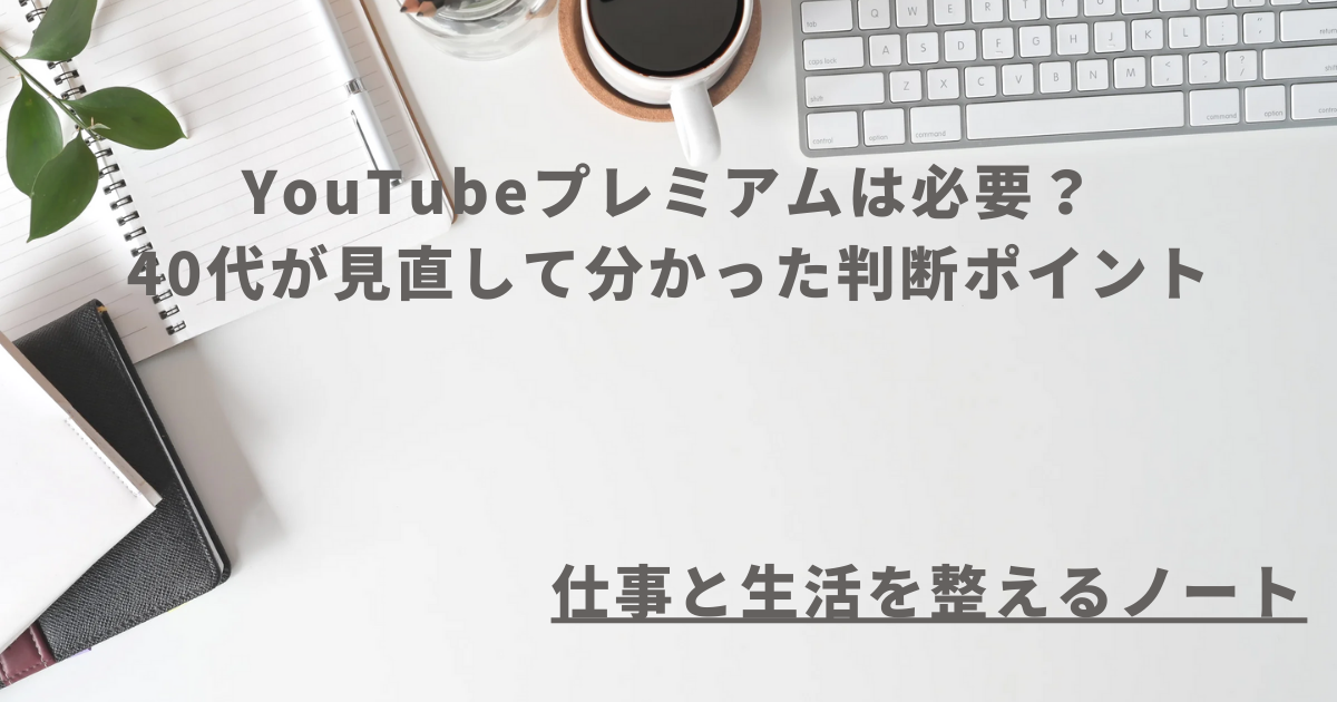 YouTubeプレミアムが今の生活に必要かを、40代の実体験をもとに見直しました。視聴時間や使い方から判断したポイントや、向いている人・向かない人を紹介します。